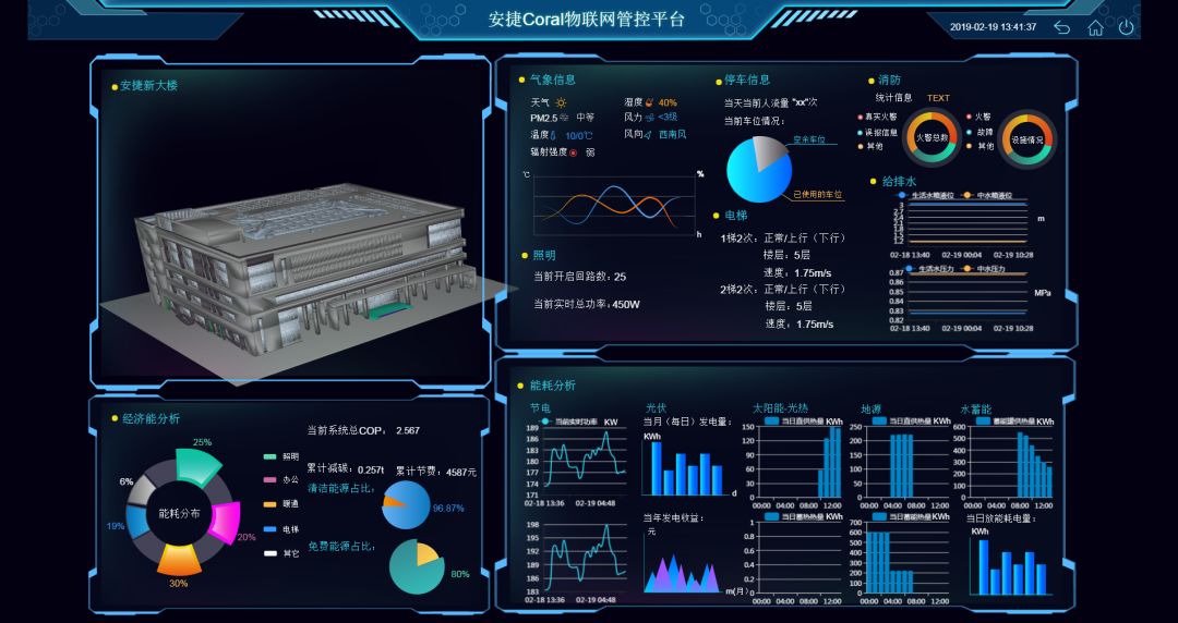 数字孪生技术通过三维数字化技术、虚拟现实技术、物联网技术,结合BB贝博艾弗森Coral智能物联网管理平台,将物理设备的各种属性映射到虚拟空间中,形成具备全要素的数字孪生镜像,利于优化设计、制造、管理和服务。可实现对当前状态的评估、对过去发生问题的诊断,以及对未来趋势的预测,并给予分析的结果,且模拟各种可能性,决策者可快速直观的了解智慧化对城市环境、城市运行等状态的提升效果。