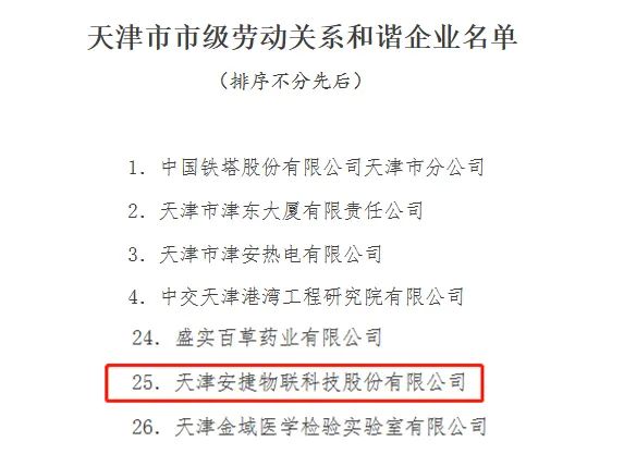 新闻|BB贝博艾弗森物联获评“天津市市级劳动关系和谐企业”