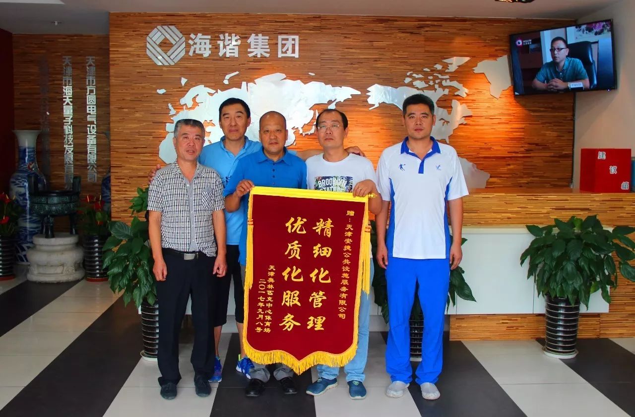 除此之外,天津奥林匹克中心体育场的领导们还亲自送来了锦旗以示感谢。